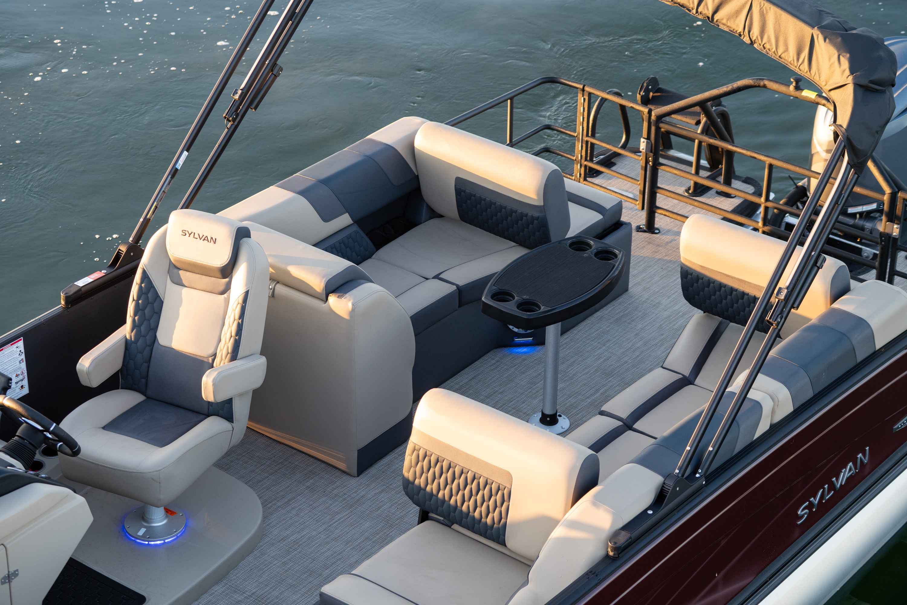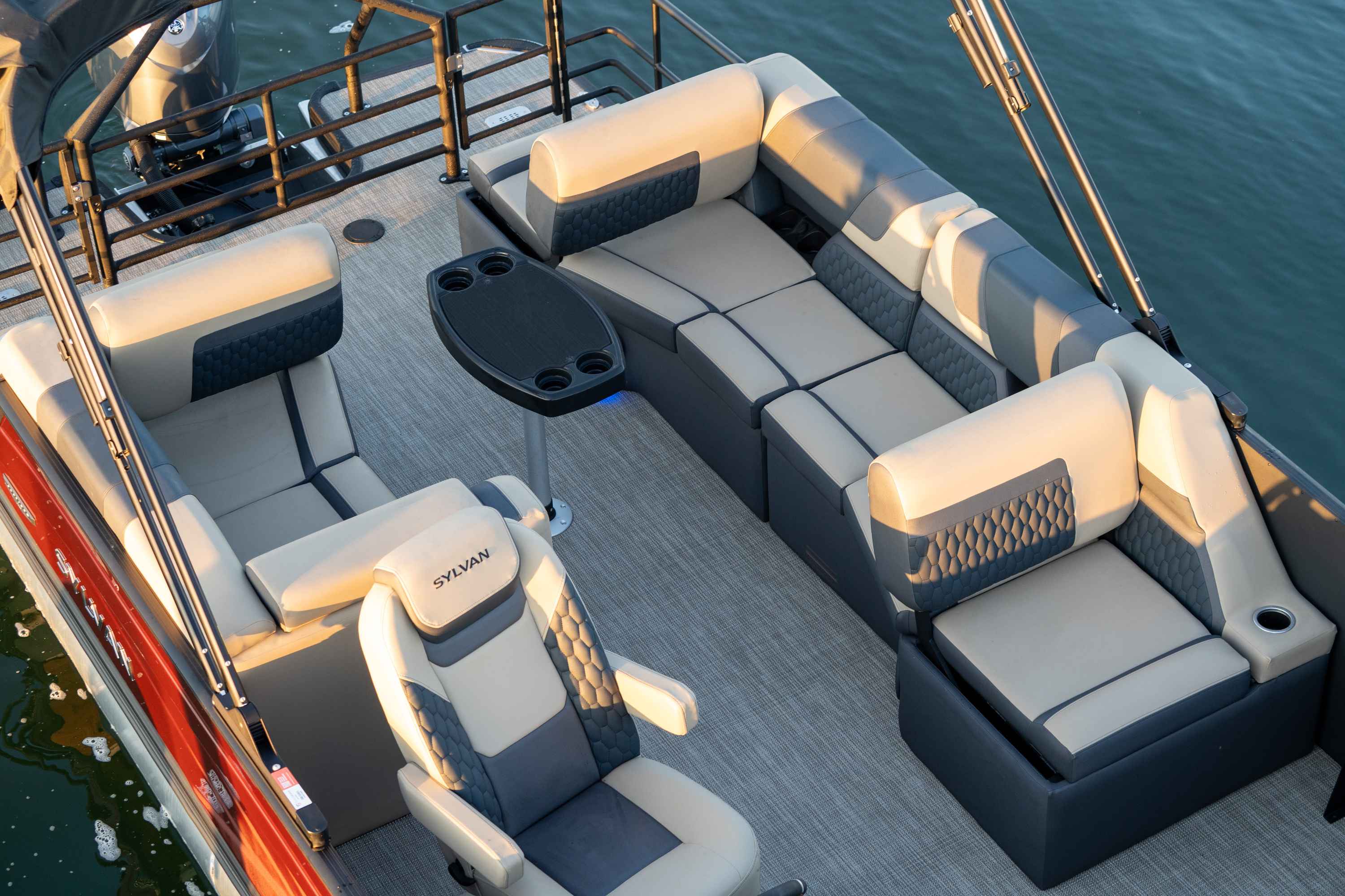 L Models include: Upholstery, Stereo & Console Upgrade, Mood Lights, Hi Back Helm, Extended Deck, Wide SS Ladder, LE Graphics, Verona Wheel, Extreme Tilt Steering, Gauge Package, 10’ Bimini, Blacked-Out Rails w/ Ski Tow